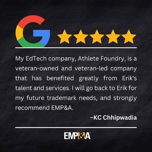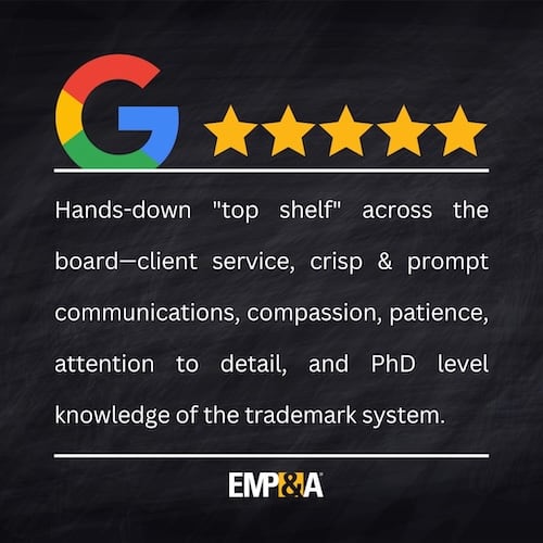 At EMP&A, we believe trademark law should be understandable and accessible. That’s why we offer flat-fee pricing with no hidden costs, responsive personal service, and hundreds of 5-star client reviews to back it up. Our website features a deep library of educational resources—including videos, infographics, and our AI-powered assistant, ChatTM®, to help answer your trademark questions any time.