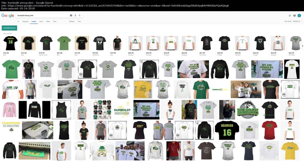 A search on Google shows many sites selling variations of the “Humboldt Strong” t-shirt: