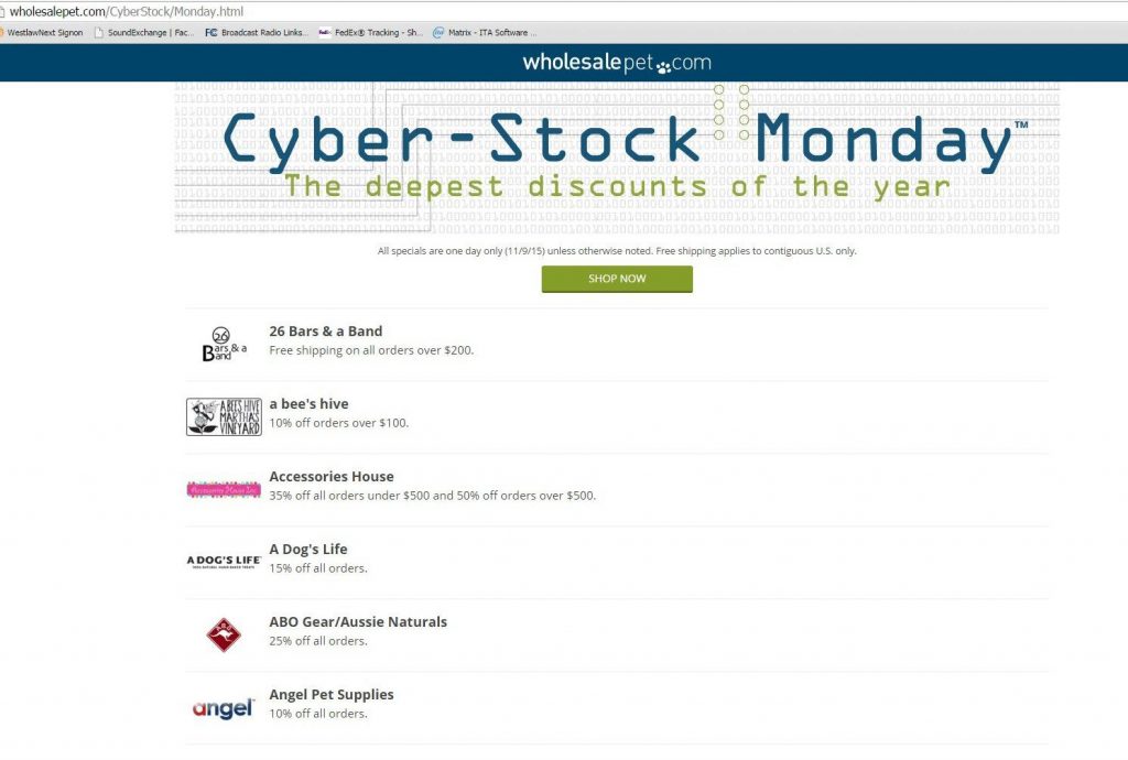 - CYBER-STOCK MONDAY – registered for On-line wholesale store services featuring pet supplies